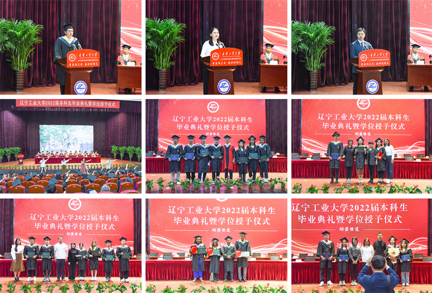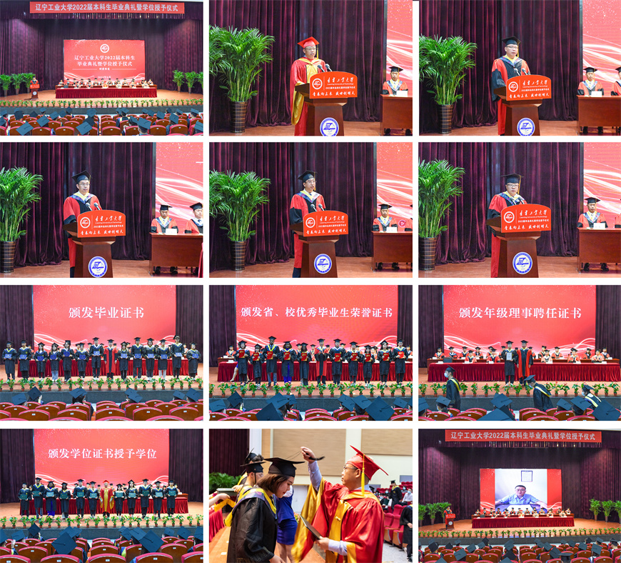 相关部门负责人宣布获得本科毕业证书学生名单、省优秀毕业生名单、校优秀毕业生名单、毕业生年级理事聘任名单、学士学位学生名单,校领导分别为学生颁发证书。