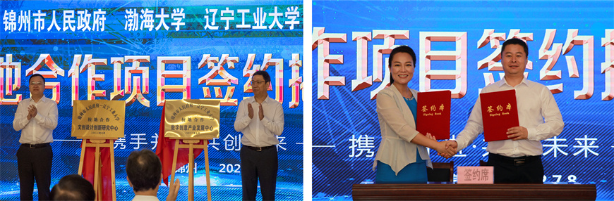 仪式上,王心宇和钱英伟共同为yabo鸭脖官网“数字创意产业发展中心”“文化设计创新研究中心”项目揭牌;刘艳军代表学校与锦州市文旅广电局签订校地合作项目协议书。