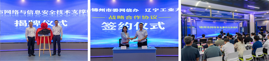 王琦和赵金波共同为锦州市网络安全技术支撑机构揭牌。刘艳军和锦州市委网信办副主任王焱签署了双方战略合作协议。崔文翀等五人被锦州市委网信办聘为锦州市网络安全与信息化专家库专家。