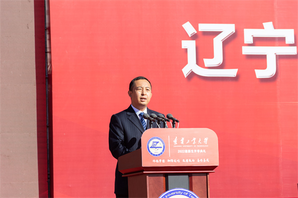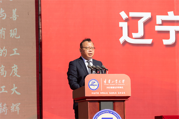 汽车与交通工程学院付禹政代表本科新生发言。他表示要勤学善思,恪守纪律,做一名德高、好学、技强、敬业的新时代辽工大人。