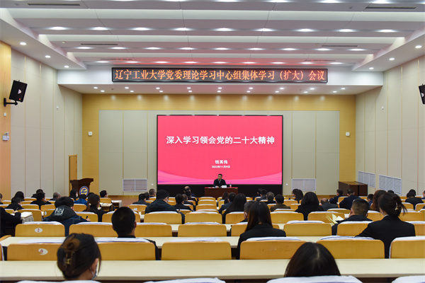 11月9日,学校在第五教学楼党员教育培训中心召开党委理论学习中心组(扩大)学习会议,专题学习党的二十大精神。党委书记钱英伟作宣讲报告。全体校领导、中层干部、党支部书记、学生党员代表,各民主党派和统战团体基层组织负责人通过线上线下方式参加了学习。