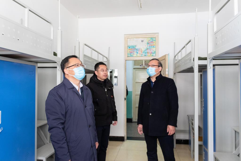 2月25日,党委副书记、校长王琦,党委副书记张启俭、副校长张广安带领相关部门负责人深入校门、教学楼、学生公寓、健康驿站、食堂等区域,对学习生活环境改造升级、防疫场所建设及物资储备、校园安全管理与条件保障等工作落实情况进行专项检查指导。