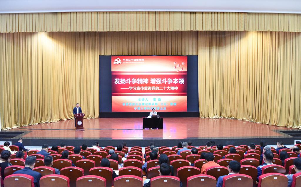 5月18日下午,学校在图书馆报告厅举办学习贯彻习近平新时代中国特色社会主义思想专题报告会。中共辽宁省委党校(辽宁行政学院、辽宁省社会主义学院)社会建设与生态文明教研部主任秦浩教授应邀作《发扬斗争精神,增强斗争本领——学习宣传贯彻党的二十大精神》专题报告。学校党委理论学习中心组成员、全体中层干部,民主党派成员、无党派人士、党外知识分子代表,统战干部参加报告会。报告会由校党委副书记张启俭主持。