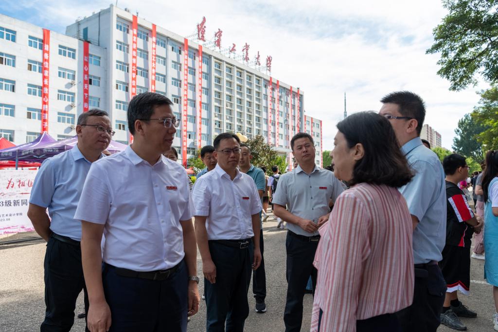 秋高气爽,硕果飘香,yabo鸭脖官网迎来2023级本科生、研究生新同学,同学们背上行囊、怀揣梦想,走进辽工大、开启崭新征程。8月26日,学校党委书记钱英伟,党委副书记、校长王琦,党委副书记张启俭,副校长刘艳军带队检查本科生、研究生迎新工作,看望新生及家长,慰问迎新工作人员及学生志愿者。