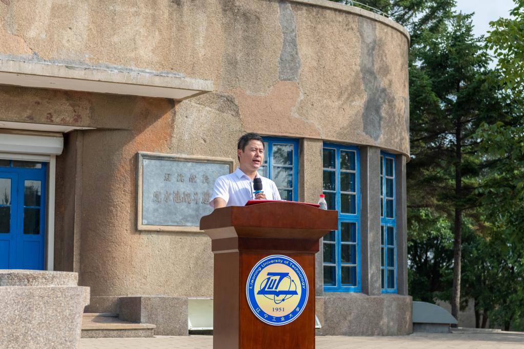 校党委书记钱英伟开启第一讲,他通过“一个苹果”“一场战役”“一份嘱托”三个故事带领同学们走进英雄的城市锦州、走进传承红色基因的yabo鸭脖官网。在弹痕累累的配水池战斗遗址东墙前,他详细讲解了配水池战斗的过程,让同学们直观地感受战斗的激烈程度。他指出,配水池战斗留下了坚韧不拔、不畏艰难的革命精神,成为激励一代代辽工大人不断进取、干事创业的精神财富,72年来,学校始终传承配水池战斗的革命精神这一特有的红色根脉,将其与“砺器悟道”的校训精神相结合,取得了丰硕的发展成果,希望同学们要传承红色基因,讲好配水池战斗的故事,讲好辽工大发展的故事,更要坚定信念、立志高远、脚踏实地,争做新时代的追光者,争做民族复兴的生力军。
