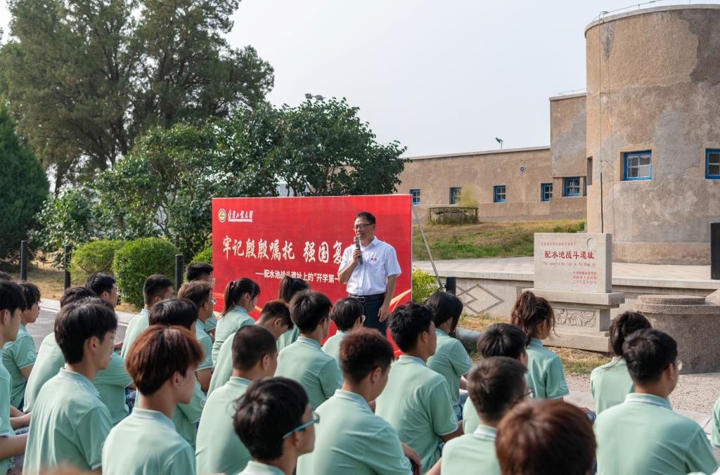 其他校领导班子成员、党委常委、思政课教师、辅导员在配水池战斗遗址上分别讲授了生动的“开学第一课”。
