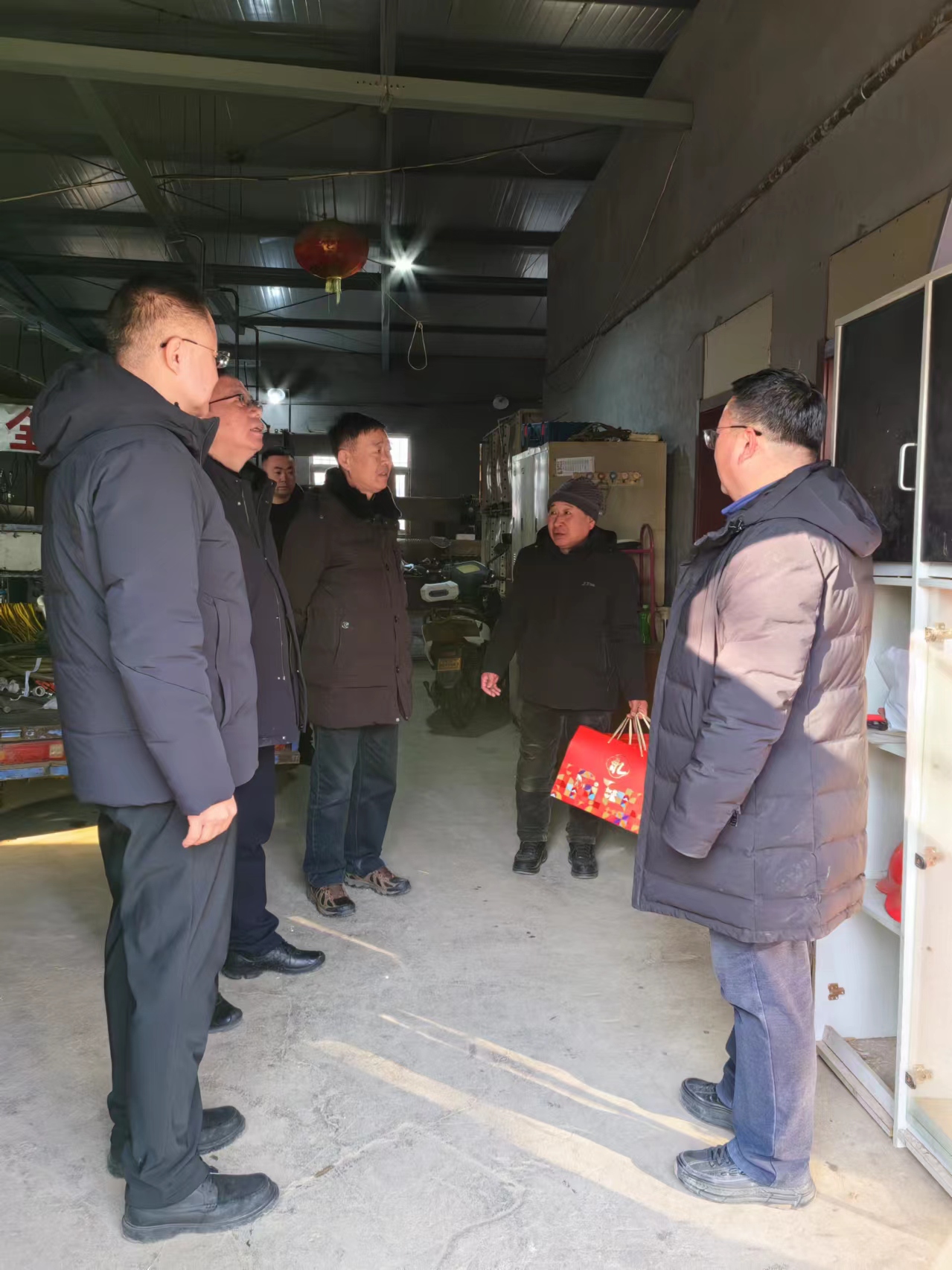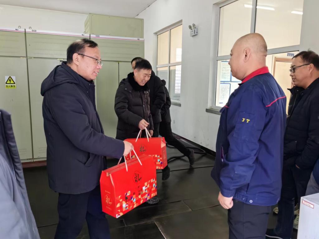 校领导先后走访了国际教育学院、变电所、西门门卫、南区供暖中心、水泵房,亲切看望了值班的教职工,热情地与他们握手交流,感谢他们为学校发展和服务育人作出的特别贡献,并送上新春礼包。