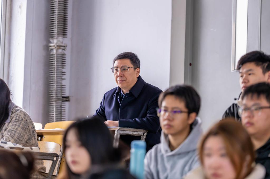 校党委副书记、校长王琦听取了刘丛浩老师讲授的《汽车试验学》课程。课间,王琦与师生们亲切交流,详细了解了课程建设、教材使用等情况,并就进一步加强课堂教学模式改革与创新提出意见建议。他询问了同学们新学期规划和对课堂教学的意见建议,鼓励青年学子树立远大理想、敢于担当作为,锤炼过硬本领,立志成长成才。