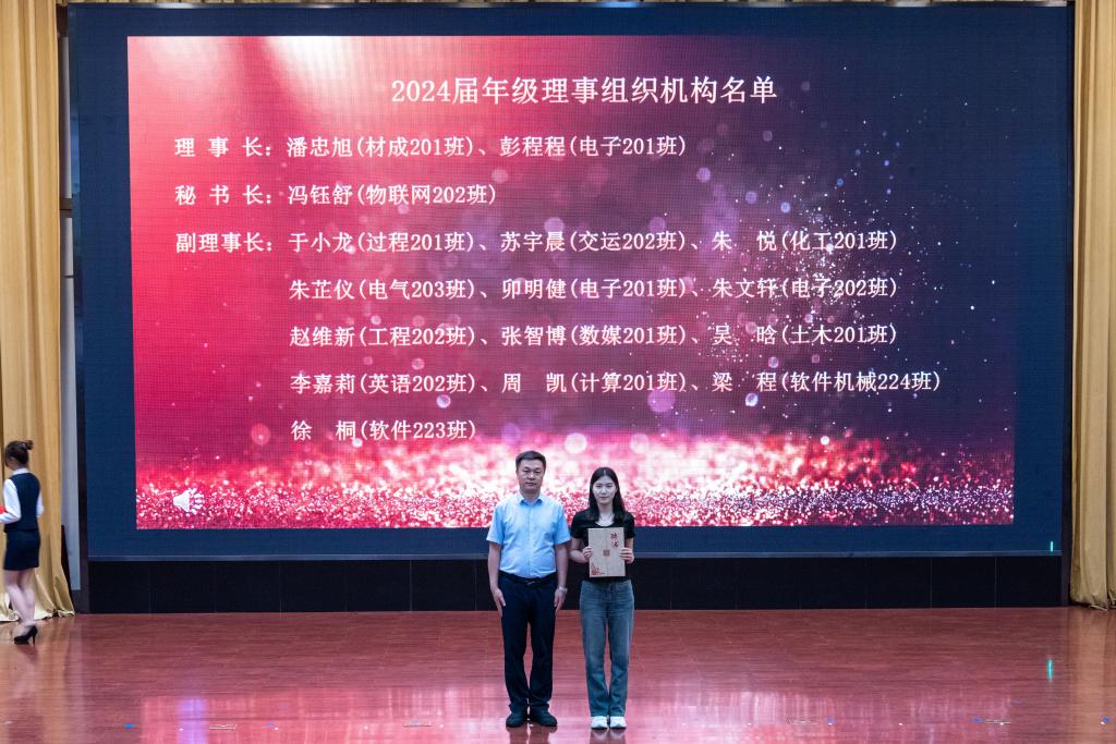 会上,宣读了《yabo鸭脖官网校友会年级理事选聘实施办法》,公布了《yabo鸭脖官网校友会2024届年级理事名单》,共有74名同学受聘为2024届年级理事。