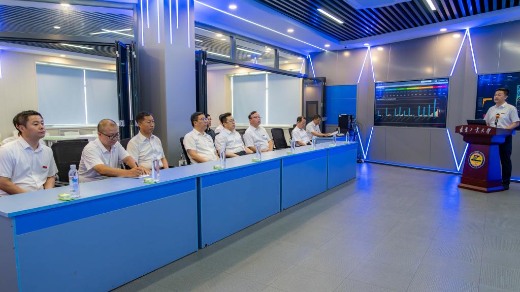 王庆东一行实地考察了化学与环境工程学院虚拟仿真实训中心、智慧校园建设中心和学校虚拟仿真实训中心,听取了学校“十四五”以来内涵发展情况的汇报,并对近年来学校的办学成绩、校园建设及发展规划给予充分肯定。