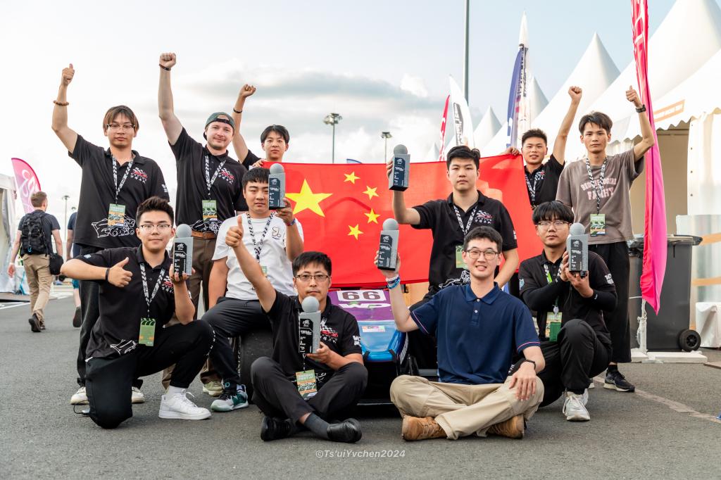 此次参赛赛车整车轻量化更为精细,设计了集成化副车架,采用高效稳定的中央制动、全新双层式油箱、防抖动尾翼可调系统等一系列新技术新方法。参赛队员们克服环境和语言困难,妥善处置现场出现各种难题,顺利通过制动测试和全部车检,出色完成各项比赛项目。尤其在竞争最激烈和最体现赛车设计水平的22公里耐久赛中成功获得第一名。