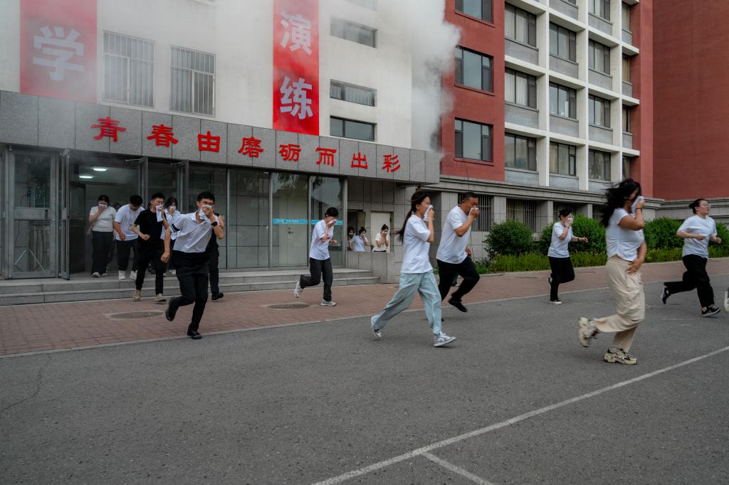 演练模拟高层学生公寓突发“火情”并有人员被困、消防监控室拨打119报警、启动楼内消防设施、控制火势蔓延等场景。根据“火情”态势,迅速启动应急响应措施,有序组织引导师生用湿毛巾等捂住口鼻,按照预定疏散路线有序撤离到安全区域。随即,消防救援人员到达现场,科学开展灭火救援行动,“火情”被成功扑灭。