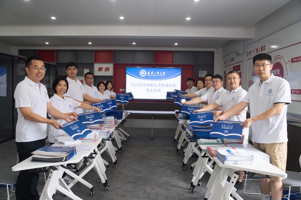 张启俭详细了解了本科招录工作整体进程安排和工作流程,询问了已投档省份的生源质量情况,向暑期坚守在招生录取一线的工作人员表示亲切慰问。随后,他亲笔签发2025级新生录取通知书,并参与录取通知书封装工作。