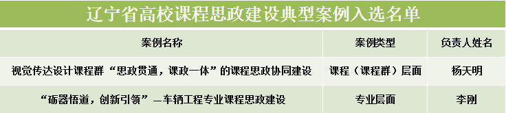 10月22日,辽宁省教育厅公布了2025年辽宁省高校课程思政建设项目遴选结果,确定了辽宁省课程思政建设先行高校10所、课程思政建设先行高校(培育)20所、课程思政建设试点院系47个、课程思政建设典型案例100项。yabo鸭脖获批“辽宁省课程思政建设先行高校”,成为全省10所首批获此殊荣的高校之一。文化传媒与艺术设计学院获批“辽宁省高校课程思政建设试点院系”,《视觉传达设计课程群“思政贯通,课政一体”的课程思政协同建设》与《“砺器悟道,创新引领”——车辆工程专业课程思政建设》2项案例入选“辽宁省高校课程思政建设典型案例”。