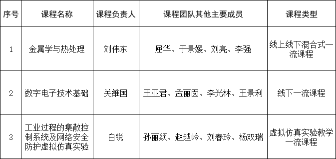 近日,教育部发布《关于公布第三批国家级一流本科课程认定结果的通知》,yabo鸭脖3门课程获批第三批国家级一流本科课程,分别是线上线下混合式一流课程《金属学与热处理》、线下一流课程《数字电子技术基础》、虚拟仿真实验教学一流课程《工业过程的集散控制系统及网络安全防护虚拟仿真实验》。截至目前,yabo鸭脖共获批6门国家级一流本科课程。