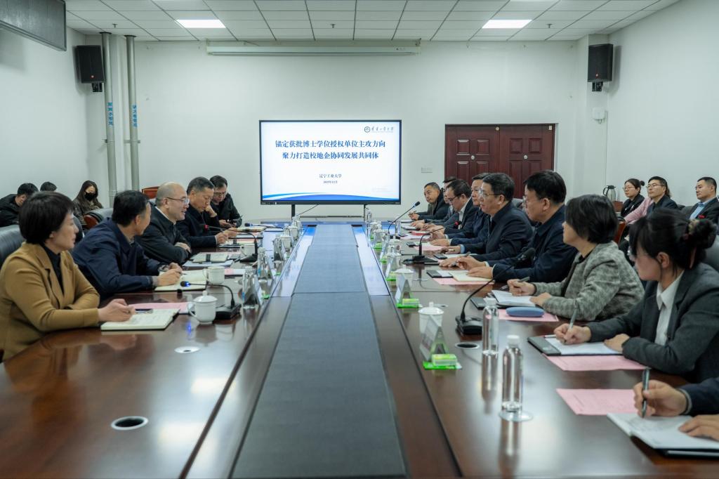 钱英伟代表学校对孟华强一行的到来表示热烈欢迎,对市委、市政府长期以来给予学校建设发展的关心与支持表示衷心感谢,并以“锚定获批博士学位授权单位主攻方向,聚力打造校地企协同发展共同体”为题作工作汇报。他表示,学校一是聚焦红色根脉传承,坚定工业报国路径选择,坚持不懈用习近平新时代中国特色社会主义思想铸魂育人,擦亮建立在辽沈战役配水池战斗遗址上的大学鲜红底色,持续讲好“三个一”的故事,着力培养高素质应用型、创新型人才;二是聚焦地方产业布局,优化学科专业调整设置,紧密围绕地方主导产业、战略性新兴产业布局,以“产教融合、供需对接”为核心,强化学科交叉融合,形成了以控制学科为引领、多学科协调发展的办学格局;三是聚焦科技自立自强,赋能地方经济社会发展,加大高层次人才引育力度,推动学校内涵式发展,提升核心竞争力,常态化开展博士入企行动,帮助企业破解技术难题,多项成果实现落地转化。他提出了学校在发展过程中面临的瓶颈问题,希望市委、市政府能在政策扶持、资源对接等方面给予更多支持,助力学校为锦州区域中心城市建设做出更大的贡献。