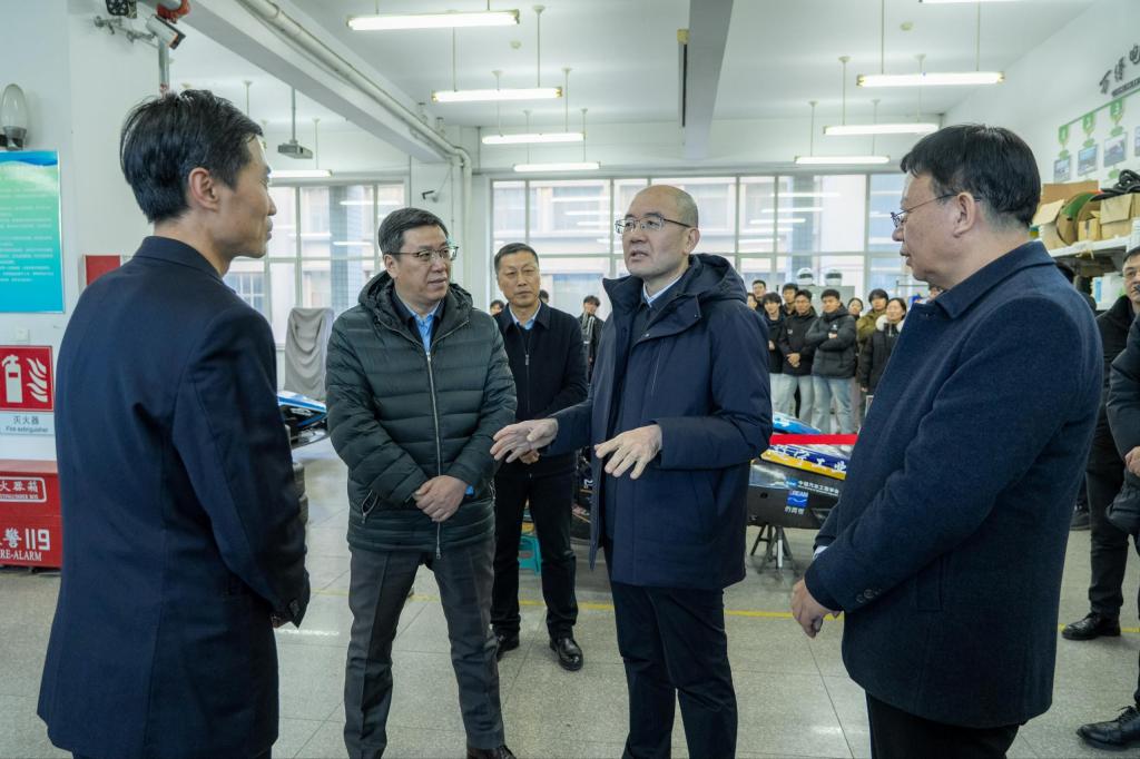 会前,孟华强一行到虚拟仿真实训中心、汽车与交通工程学院大学生万得车队科技创新实验室、材料科学与工程学院先进金属材料与精密成型研发中心参观调研。锦州市人民政府副市长孙志海等领导陪同调研。(李晓忱 文/李刚 摄影)