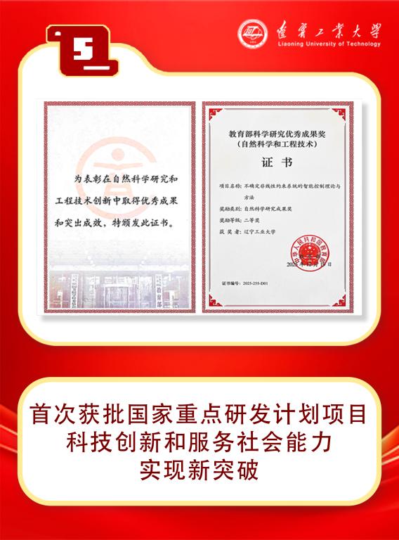 延伸阅读:2025年,学校持续推进有组织科研,项目承担能力持续增强,获批国家级和省部级科研项目106项,其中获批国家自然科学基金、国家重点研发计划等国家级项目11项,荣获教育部自然科学奖、辽宁省自然科学奖及科技进步奖等省部级科技奖励8项。服务经济社会发展成效突出,围绕人工智能、金属新材料等前沿领域,与锦州市政府共建新型工业化院1个、锦州金属新材料产业技术研究院1个,持续开展博士驻企行动,累计选派博士101人次入驻企业解决技术难题163项,签订横向课题71项,全年科研进款总额达1.3亿元,再创新高。