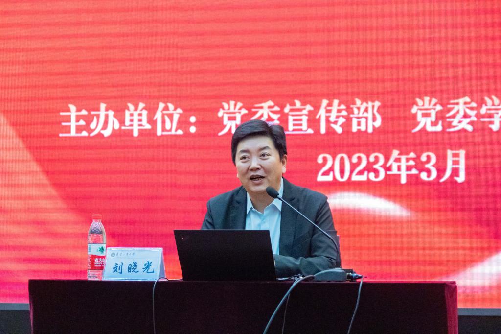 刘晓光根据习近平总书记在考察辽沈战役纪念馆时重点关注的内容,从战略、民心、英模、纪律四个维度,对解放战争转折之战——辽沈战役取得伟大胜利的原因、历史意义及蕴含的时代内涵等进行了深入的阐述,给在场师生上了一堂精彩的思政大课,一堂红色传承的主题团课;刘晓光还根据习近平总书记考察辽沈战役纪念馆时的重要讲话精神,结合锦州发展宏图,寄语同学们踏实学习,努力奋斗,扎根锦州,为辽宁振兴、东北振兴、为实现中华民族伟大复兴的中国梦发挥更大的作用,为在场师生上了一堂指引成长的人生大课。