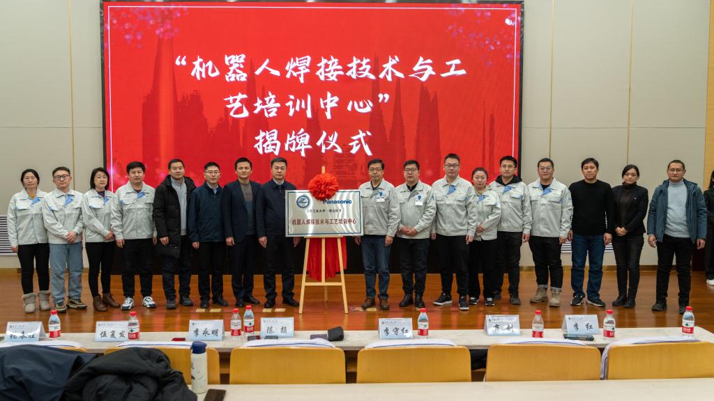 李永明和陈颉共同为“机器人焊接技术与工艺培训中心”揭牌。