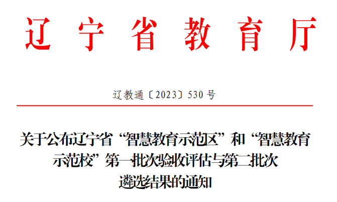 近日,辽宁省教育厅公布辽宁省“智慧教育示范区”和“智慧教育示范校”第一批次验收评估与第二批次遴选结果,yabo鸭脖成功入选辽宁省第二批“智慧教育示范校”创建单位。