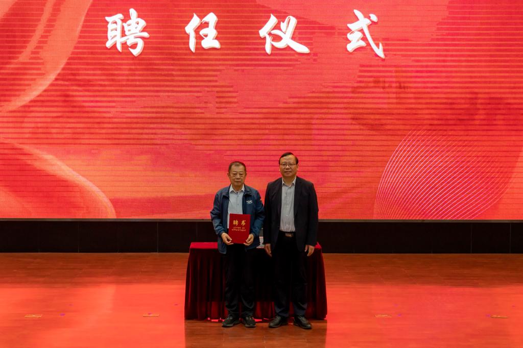 讲座前,张启俭为孙心电颁发yabo鸭脖官网“立德树人工程”讲师团教授聘书。