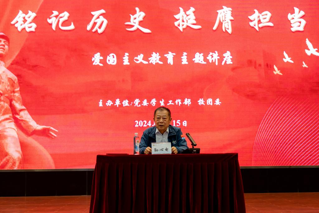 孙心电以“铭记历史,挺膺担当”为主题,用丰富的事例从“近代中华民族的苦难史”“我党我军的奋斗史”“积极投身伟大祖国的民族复兴史”“书写好新时代大学生的成长奉献史”四个部分向大家讲述了中华民族迈向伟大复兴的辉煌历程,勉励同学们要铭记历史,挺膺担当,做新时代的奋进者。