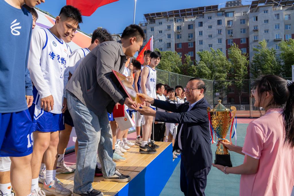 本届篮球赛共有12支学院代表队参赛,历时一个月的激烈角逐,运动员们充分展现了斗志昂扬、坚定自信的精神风貌。最终,文化传媒与艺术设计学院获得冠军,土木建筑工程学院获得亚军,理学院获得季军。理学院刘旭炎同学荣获联赛最有价值球员,文化传媒与艺术设计学院昂赛尔同学荣获总决赛最有价值球员。张启俭为文化传媒与艺术设计学院篮球队颁发冠军奖杯。