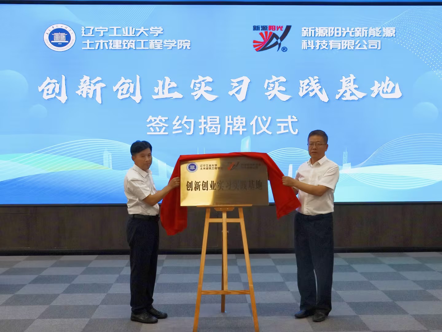 7月12日,土木建筑工程学院与锦州新源阳光新能源科技有限公司举行创新创业实习实践基地签约揭牌仪式。锦州市委组织部、锦州市科技局、太和区委相关负责人,锦州新源阳光新能源科技有限公司董事长王秋建,土木建筑工程学院院长董锦坤参加了签约揭牌仪式。
