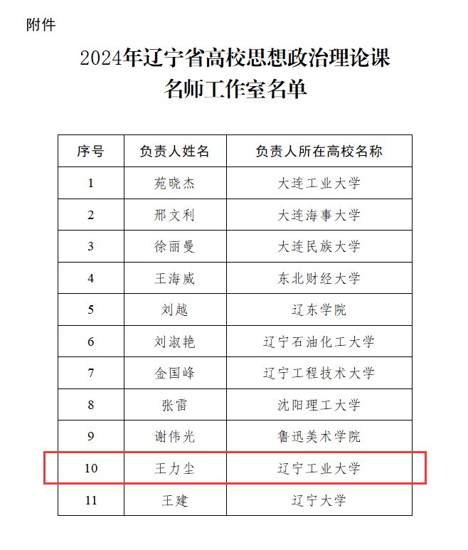 日前,辽宁省教育厅下发《关于公布2024年辽宁省高校思想政治理论课名师工作室遴选名单的通知》(辽教通〔2024〕271号),yabo鸭脖马克思主义学院王力尘教授思政课教师团队成功获批2024年辽宁省高校思想政治理论课名师工作室。