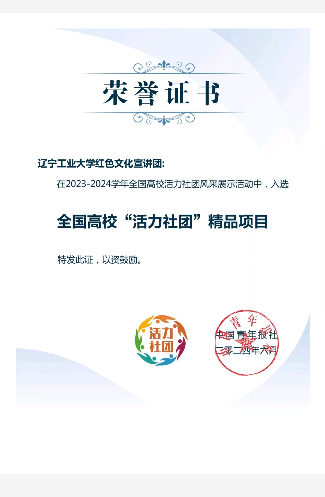 聚焦思想引领,在培根铸魂上凝心聚力。坚持把党史学习教育作为青年学生思想建设和理论武装的重要内容,成立大学生红色文化宣讲团,通过“青言青语”讲好党的故事、革命的故事、英雄的故事。2024年,共56支社会实践团队开展党史学习教育理论宣讲,1个项目获批2024年“井冈情·中国梦”全国大学生暑期社会实践专项活动重点项目,大学生红色文化宣讲团荣获2023-2024学年全国高校“活力社团”,16支社会实践团队入选团中央志愿服务宣讲团,累计开展“两弹一星”精神、井冈山精神、延安精神等宣讲200余场受众约1.4万人次,其中软件学院“红星‘陕’耀”志愿宣讲团获评2024年全国大学生延安精神志愿宣讲活动优秀团队、“辽工大红色印记遵义之路”团队获批贵州省“青春长征”专项实践活动重点项目。