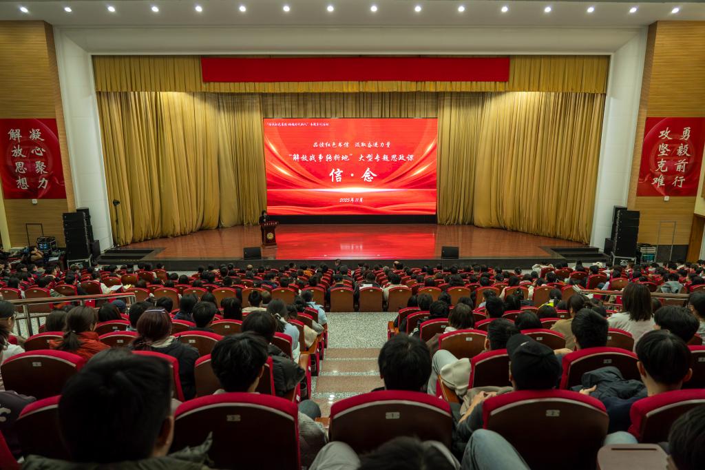 11月11日,由辽沈战役纪念馆推出的“解放战争转折地”大型专题思政课《信・念》首演在yabo鸭脖图书馆报告厅举行。校党委副书记、校长张启俭,党委副书记刘艳军,辽沈战役纪念馆副馆长刘芳出席活动。学校相关部门负责人、思政课教师、全体辅导员,青马班学员和本科生团干部代表500余人参加活动。活动由校团委书记李苓主持。
