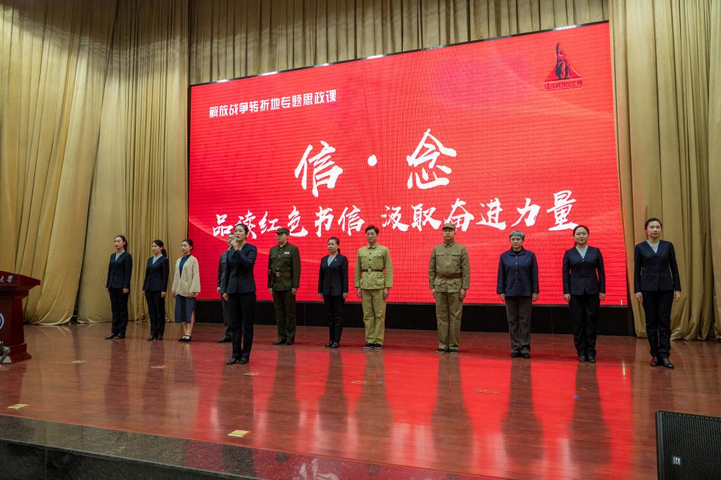 《信・念》课程撷取辽沈战役纪念馆内收藏的解放战争时期革命先辈的6封红色书信,以“信仰”“奉献”“忠诚”“为民”“铭记”“传承”为主题,通过教师主讲、红色故事、情景剧、诗朗诵、访谈等形式深情回溯了书信背后的烽火往事,为红色教育注入了鲜活生命力、直抵人心。师生们在品读“纸短情长”中触摸历史温度,在感悟“字重千钧”中汲取信仰力量,深刻体会革命先辈的家国情怀与使命担当,不仅是历史与现实的回响,更是一次跨越时空的精神传承。