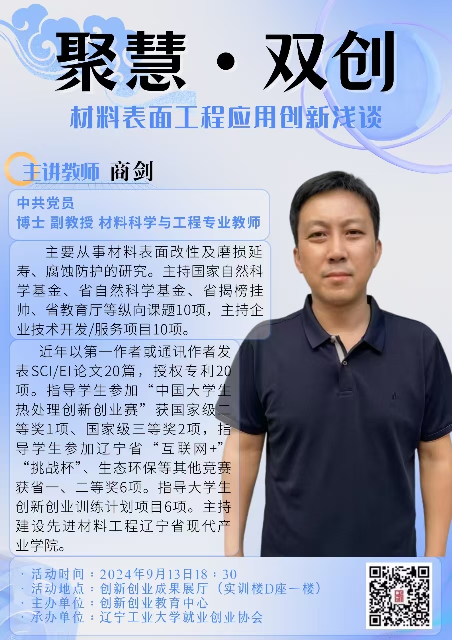 报告题目:“聚慧·双创”——材料表面工程应用创新浅谈