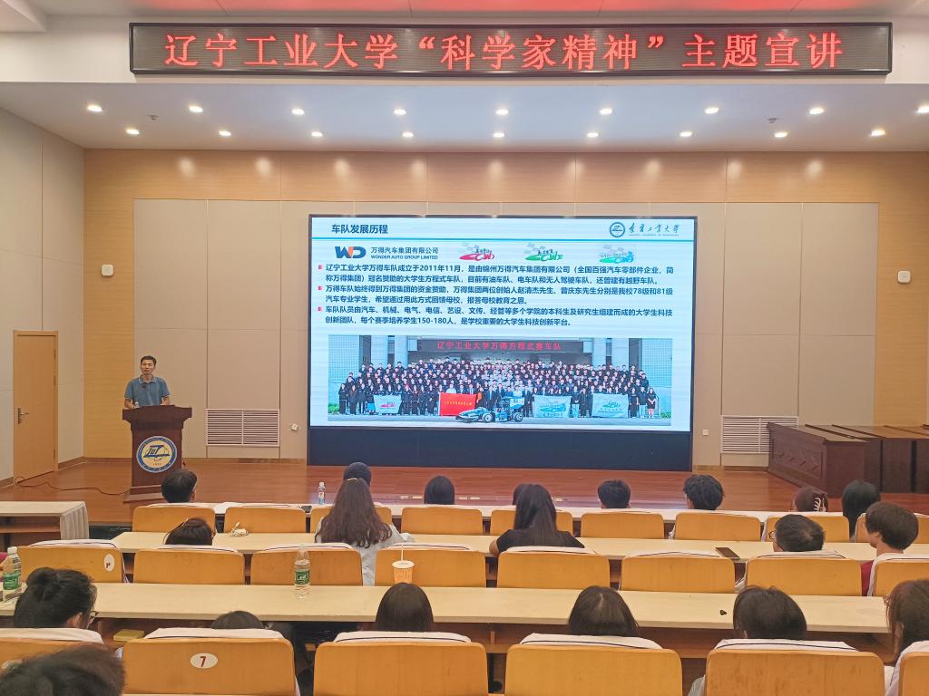 李刚以“砺器悟道,创新引领——辽工大万得车队发展中的科学家精神密码”为题,通过一张张珍贵的照片,梳理回顾了车队的光辉历程、组织架构、创新成果。他表示,“万分努力”四个字是万得车队的精神坐标,也是辽工大学子对科学家精神最朴素的诠释。万得车队的发展是“砺器悟道”校训的生动实践,“爱国、创新、求实、奉献、协同、育人”的科学家精神贯穿万得车队发展始终,并不断被赋予新的时代内涵,激励着一代代辽工大人砥砺奋进、勇毅前行。