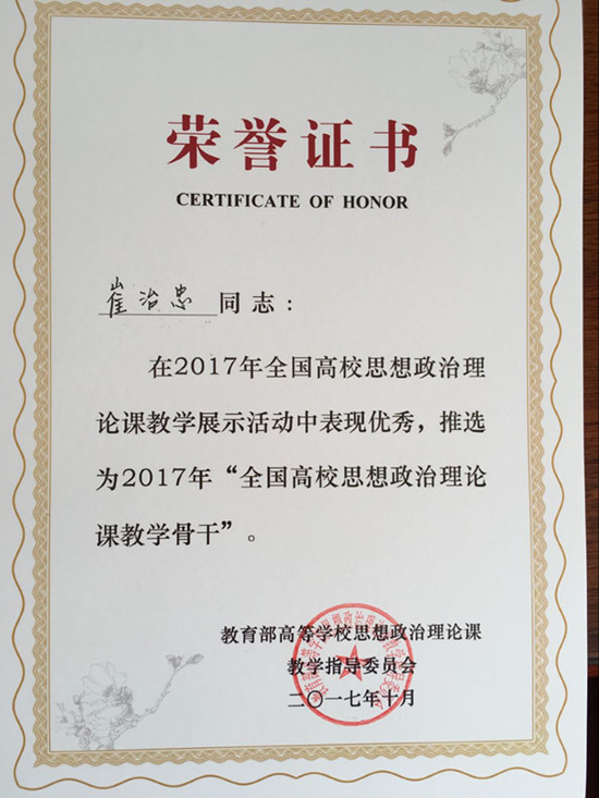 日前,马克思主义学院两位老师在2017年全国高校思想政治理论课教学展示活动中荣获佳绩。 其中,崔治忠副教授在10月28日举行的研究生思想政治理论课现场教学展示活动中,被推选为“全国高校思想政治理论课教学骨...30 2017-10 -