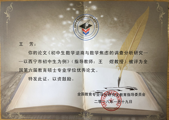 必赢官网毕业生喜获全国教育硕士专业学位优秀论文奖