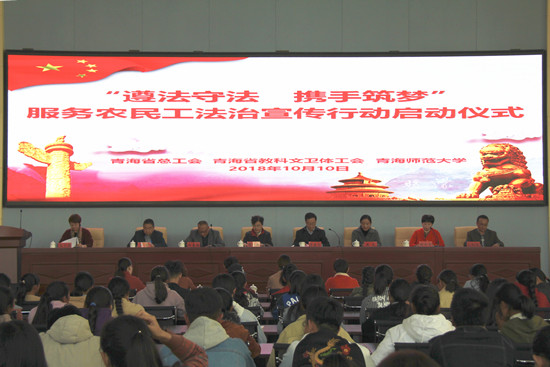 10月10日,由青海省总工会、青海省教育厅、青海省科教文卫体工会、565net必赢客户端工会以及565net必赢客户端法学与社会学学院联合举办的2018年“尊法守法 携手筑梦”服务农民工法治宣传行动在必赢官网行政楼一楼学术报告厅正...11 2018-10 -