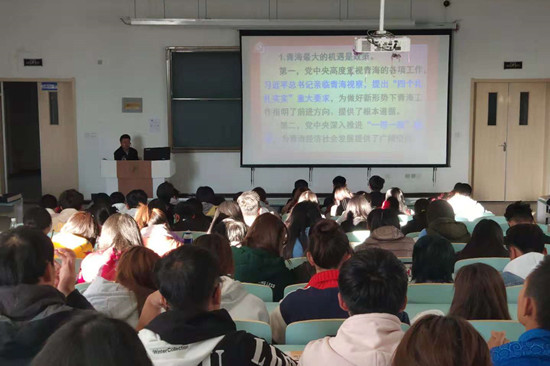 青海省委宣传部讲师团团长郭云甫教授应邀来必赢官网作专题讲座