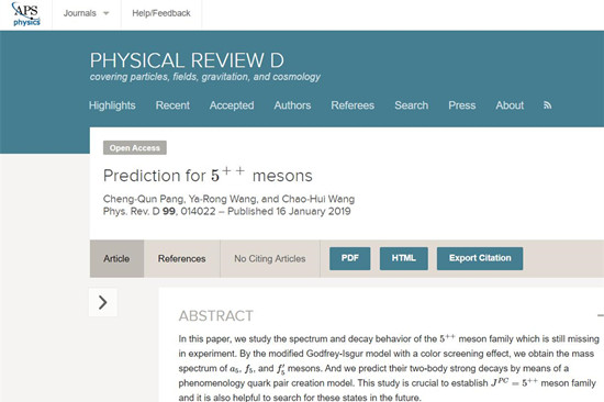 近日,必赢官网物理与电子信息工程学院庞成群博士的研究论文“Prediction for 5++ mesons”发表在了世界著名物理学学术期刊《物理评论D》(Physical Review D)上。该论文预言了JPC量子数为5++介子的质量及衰变行为,...21 2019-01 -