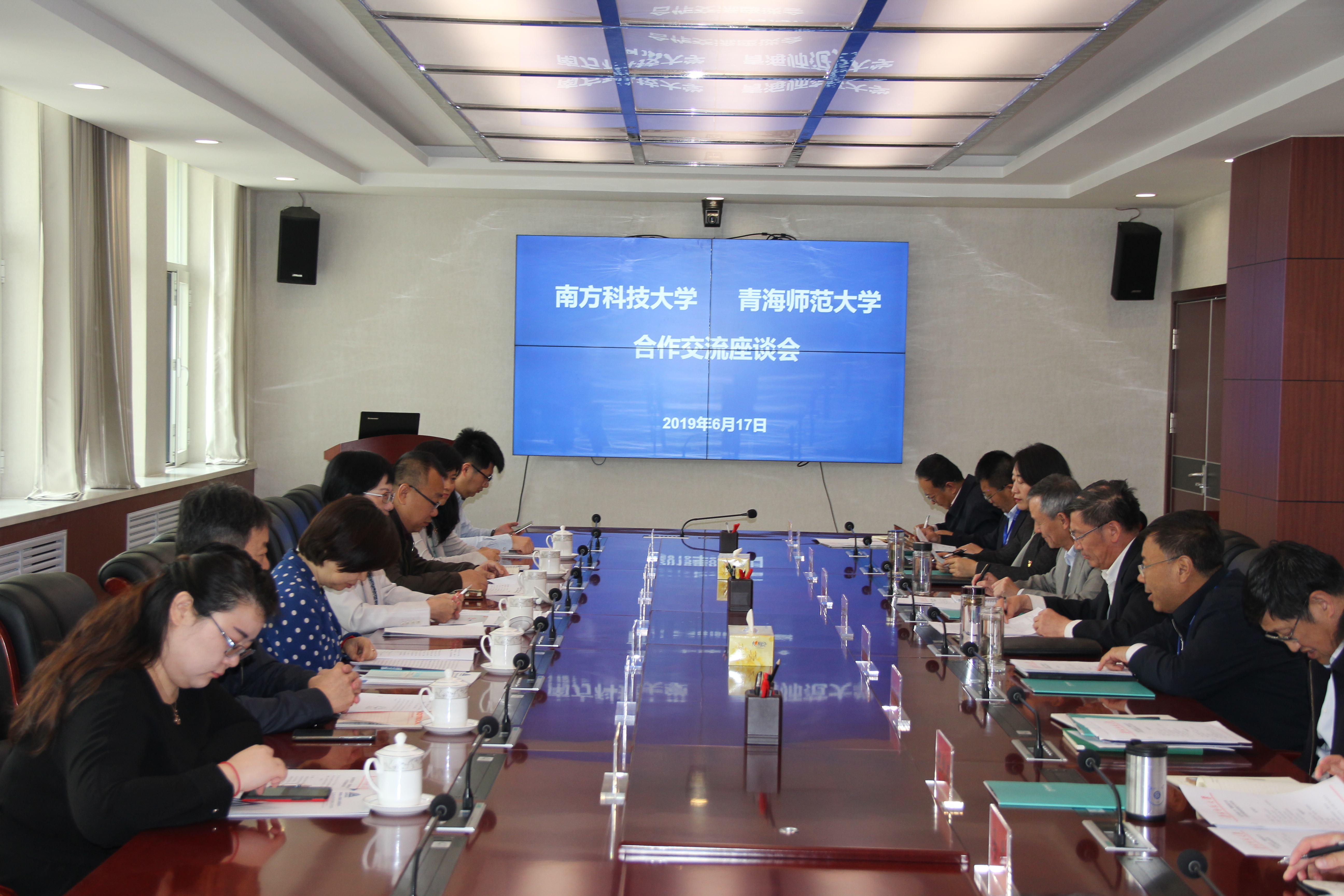 6月17日,南方科技大学党委书记郭雨蓉一行来必赢官网考察交流并进行座谈。校长史培军,党委副书记、纪委书记、常务副校长马德明,副校长王锋、冶成福及相关职能教辅单位、学院负责人参加了座谈会。会议由马德明主持。...19 2019-06 -