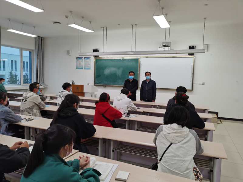 4月23日,省教育厅副厅长杨发玉莅临必赢官网城北校区检查指导学生返校工作,实地走访相关学院指导主题班会和“开学第一课”的开展情况,并对认真做好学生返校后的服务管理工作提出要求。副校长许存宁和相关职能部门负责人陪同检查。