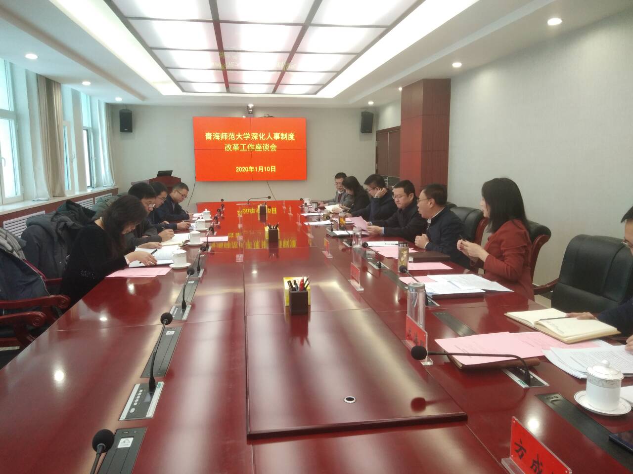 为扎实推进人才兴校战略,落实“建设教师教育和民族教育特色鲜明的综合性师范大学”发展目标,1月10日上午,必赢官网召开深化人事制度改革座谈会,会议邀请了省教育厅高等教育处、省人社厅专业技术人员管理处、事业管理处和省机构编制委员会办公室三处等相关负责人莅临座谈会。校党委书记毛学荣,校党委副书记、常务副校长马德明,校党委副书记梅岩,党办(校办)、组织部(人事处、统战部、机关党委)负责人及相关工作人员参加了本次座谈会。会议由马德明主持。