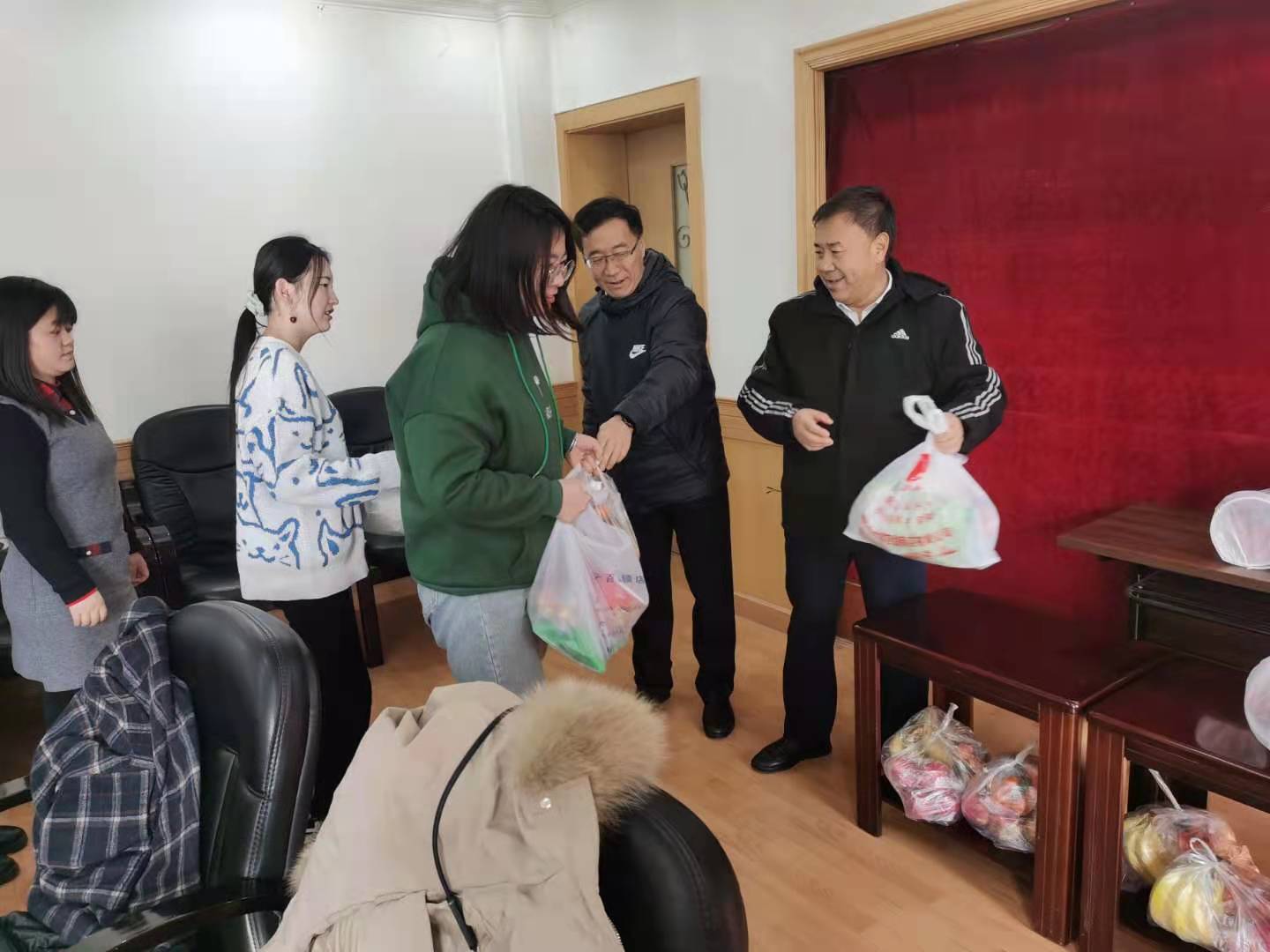 马德明、许存宁表示学校将全力为留校同学的学习、生活做好各方面的保障工作,确保同学们度过一个温馨暖心的寒假,并祝同学们新春愉快、学业有成,还向同学们远方的家人表达了诚挚的问候。