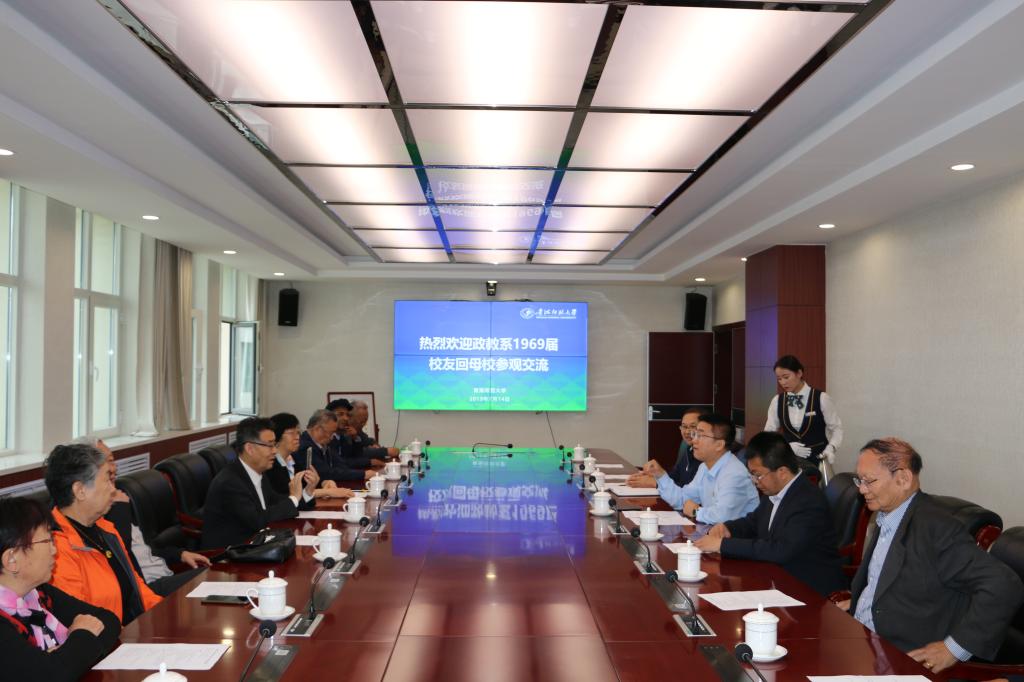 校园再聚首,重叙同窗情。7月14日,学校迎来了一批不一样的老朋友——政教系1969届校友。10余位校友在毕业50周年之际,再次相聚在美丽新师大,回忆峥嵘岁月,述说时光变迁,表达对母校的美好祝愿和深深怀恋。学校精心组织和安排了此次校友返校活动,校党委副书记梅岩全程陪同。