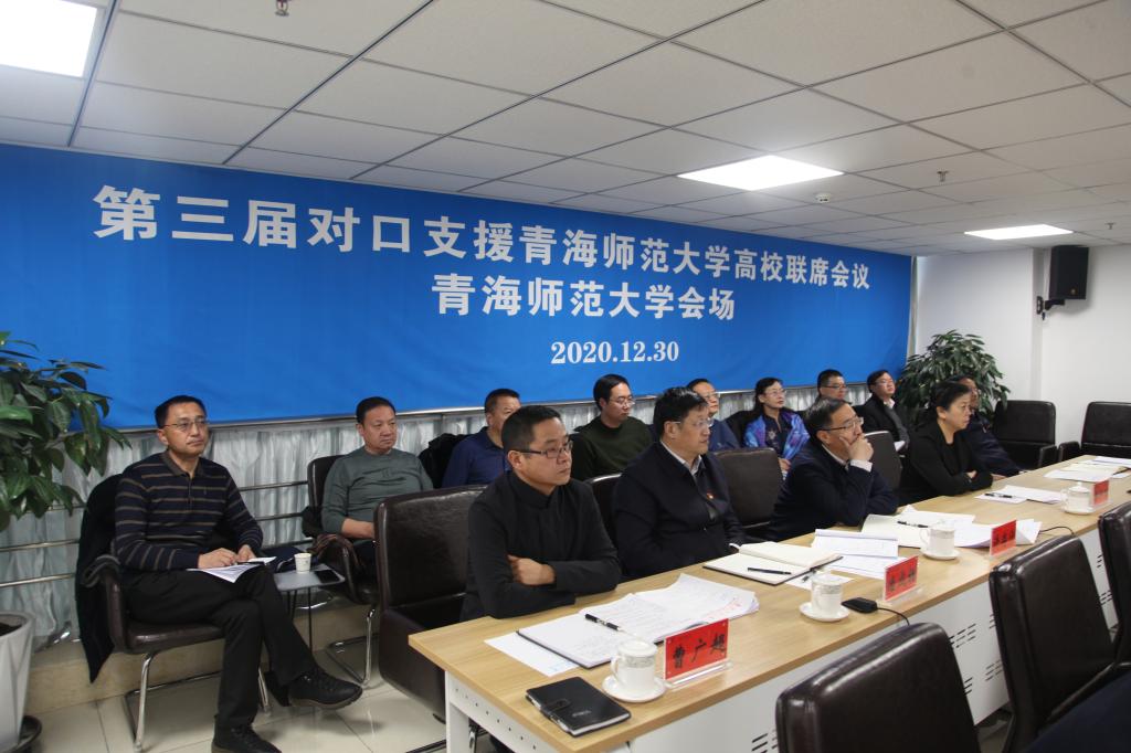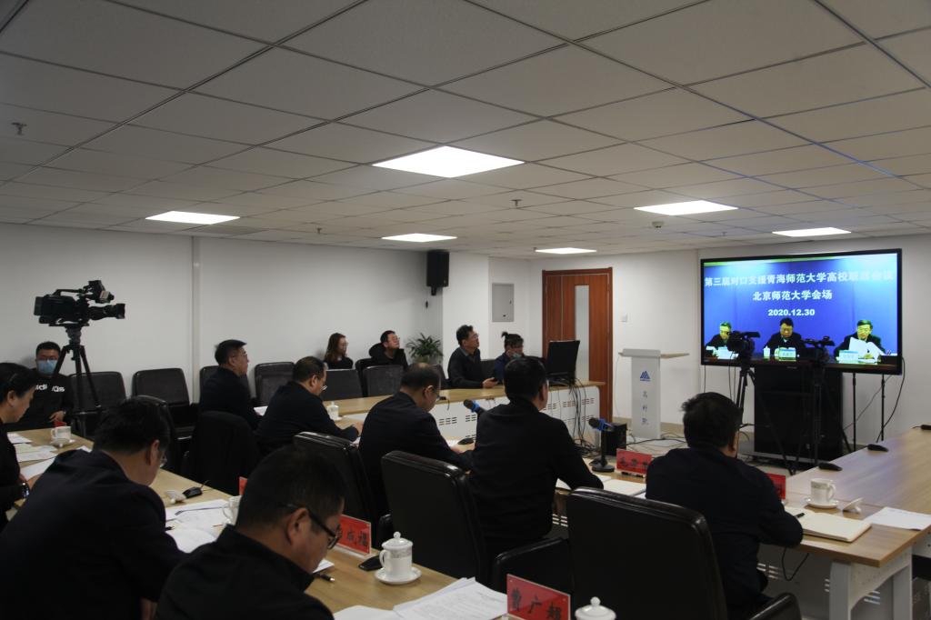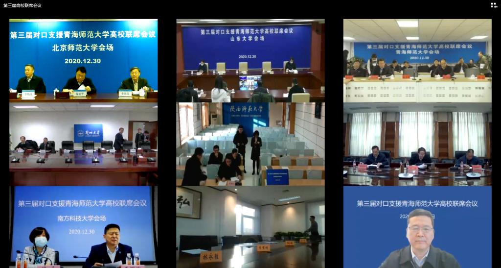 教育部高等教育司二级巡视员、综合处处长武世兴,青海省人民政府副省长杨志文、办公厅副秘书长王述友,青海省教育厅副厅长梅岩,北京师范大学党委书记程建平、副书记李晓兵,山东大学党委书记郭新立、常务副校长王琪珑,兰州大学党委书记马小洁、党委常务副书记吴国生,陕西师范大学副校长任晓伟,首都师范大学、北京体育大学、南方科技大学相关负责人及必赢官网全体校领导、相关职能部门和院系负责人共同相聚云端,共话对口支援工作。