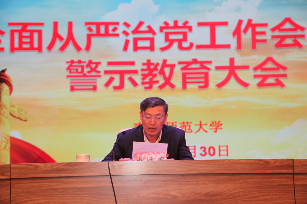 校党委副书记梅岩传达学习了中央纪委四次全会和省纪委四次全会精神。党委副书记、常务副校长马德明总结部署了2020年党风廉政建设和反腐败工作。数学与统计学院党总支书记鲍洪武、地理科学学院党总支书记杨登兴、校党委常委、组织部长黄生亮结合本单位开展党风廉政建设和反腐败工作实际做了大会交流发言。