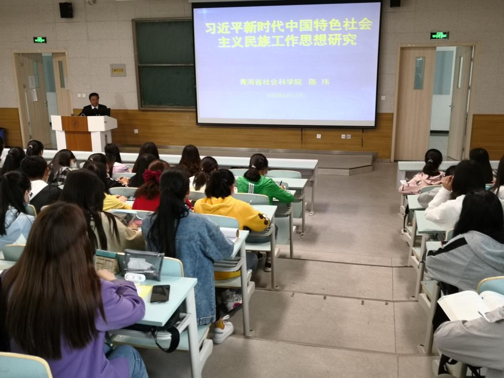 6月12日上午,青海省社会科学院原党组书记、院长陈玮教授来校作了题为《习近平新时代中国特色社会主义民族工作思想研究》的学术讲座。马克思主义学院教师、文学院汉语言文学专业100余名师生聆听了报告。