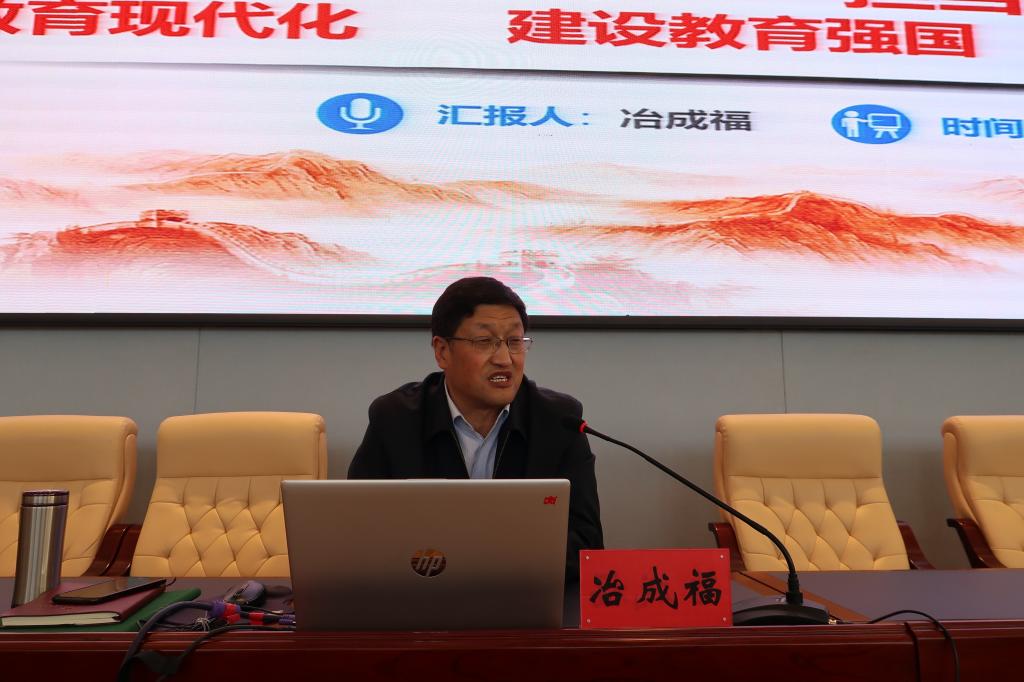 不忘教育报国初心,担当立德树人使命。10月12日下午,副校长冶成福以“推进教育现代化 建设教育强国 办人民满意教育 ”为题,为分管部门和联点学院全体党员同志上了一堂精彩的党课。
