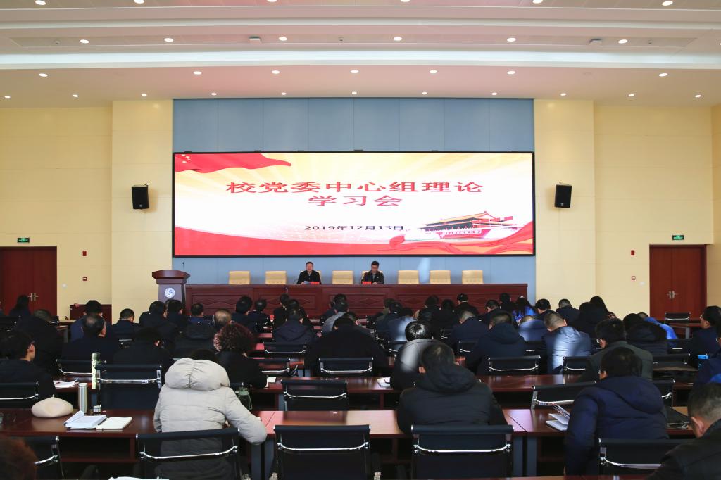 校党委书记毛学荣传达了12月12日刘涛副省长在分管行业领域单位全体领导班子参加的学习贯彻党的十九届四中全会精神座谈会上的重要讲话精神,并结合学校实际就进一步学习宣传、贯彻落实全会精神作了部署和安排。